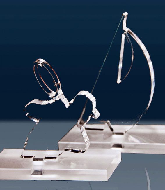 Taglio laser su plexiglass trasparente a incastro su base sabbiata