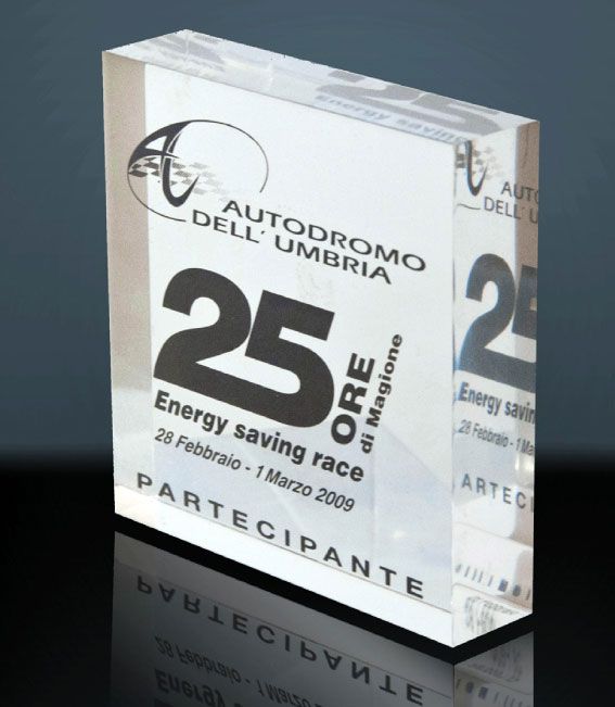 Blocchetto in metacrilato trasparente con serigrafi a a un colore